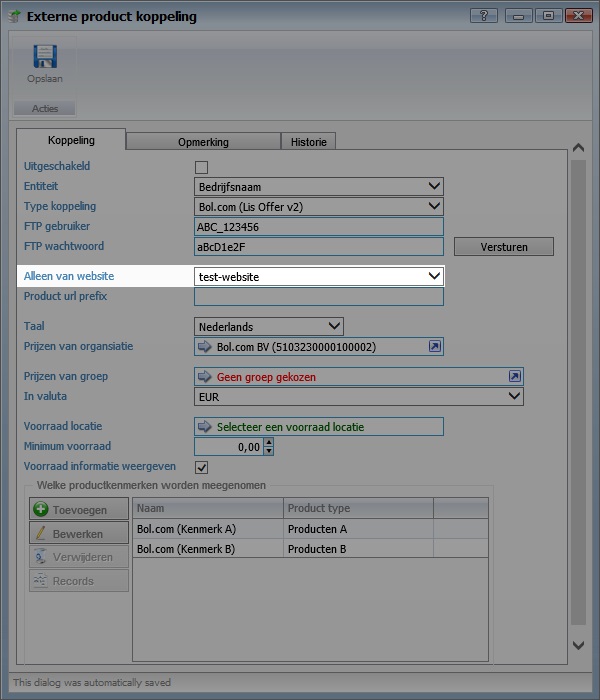 Selecteer bij Alleen voor website de website waar de productkoppeling betrekking op heeft.