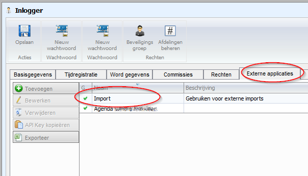 Deze omgeving is gekoppeld aan een gebruiker (met wachtwoord) en een externe applicatie.