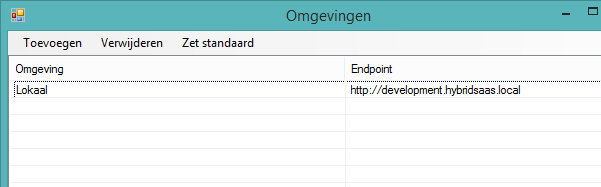 In de applicatie kan de instelling van de omgeving worden ingesteld. In het hoofdscherm is er zichtbaar welke omgeving actief is.