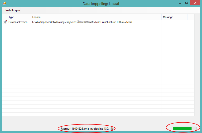 Na het kiezen voor verwerken zullen de facturen worden geïmporteerd Tijdens het laden kan je de voortang zien recht onderin