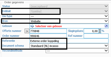 - Hier kan er aangegeven worden vanaf welke bron deze order is gekomen