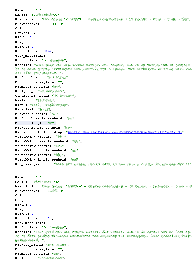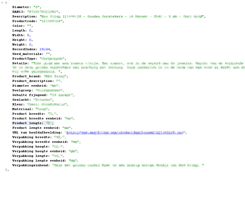 Doormiddel van &detail=1 achter de URL te zetten kunnen er details worden getoond van het product