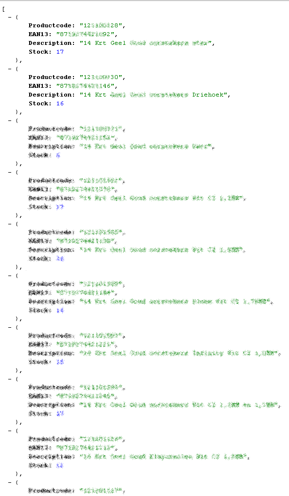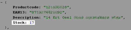 https://{domein}.hybridsaas.com/export/customer-stock-feed/{koppelingId}?output=json&secret={secretId}&sku={Productcode},{Productcode}&detail=1