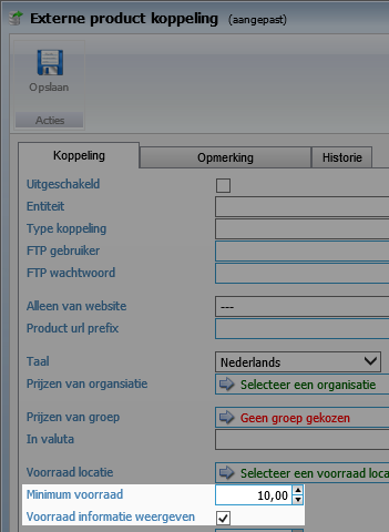 Let op! indien de voorraad hoger is dan het aangegeven minimale aantal zal er alleen het minimale aantal worden weergegeven