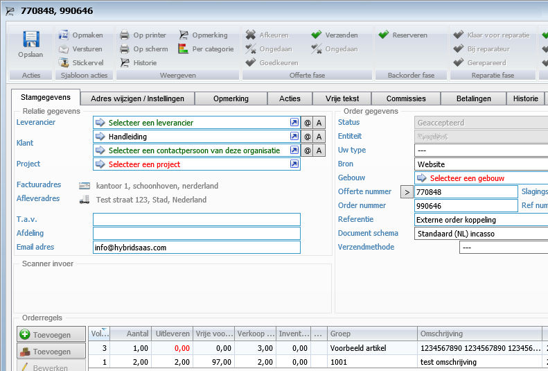 - Na het zien van deze melding zal de order zijn aangemaakt in Hybrid SaaS