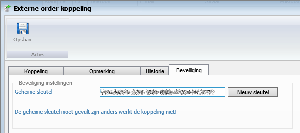 De {secretId} is hier te maken, doormiddel van de knop nieuwe sleutel zal er een code worden gegenereerd, deze code dient doorgegeven te worden naar de tegenpartij (developer)
